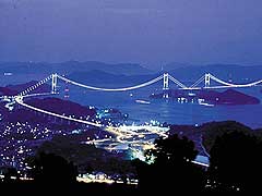 来島海峡の自然景観を生かして造られた世界初の三連吊橋